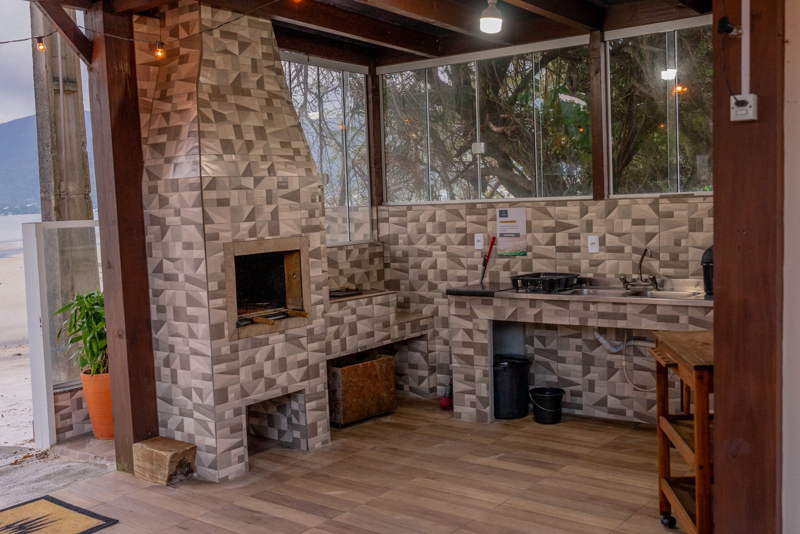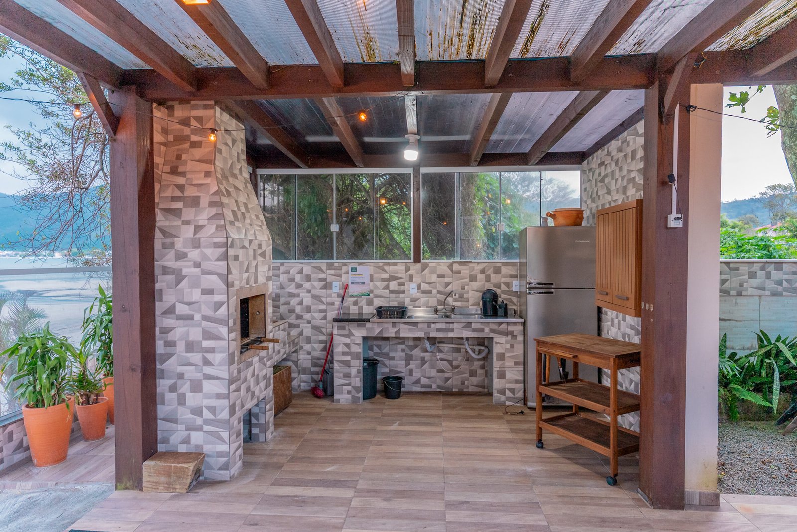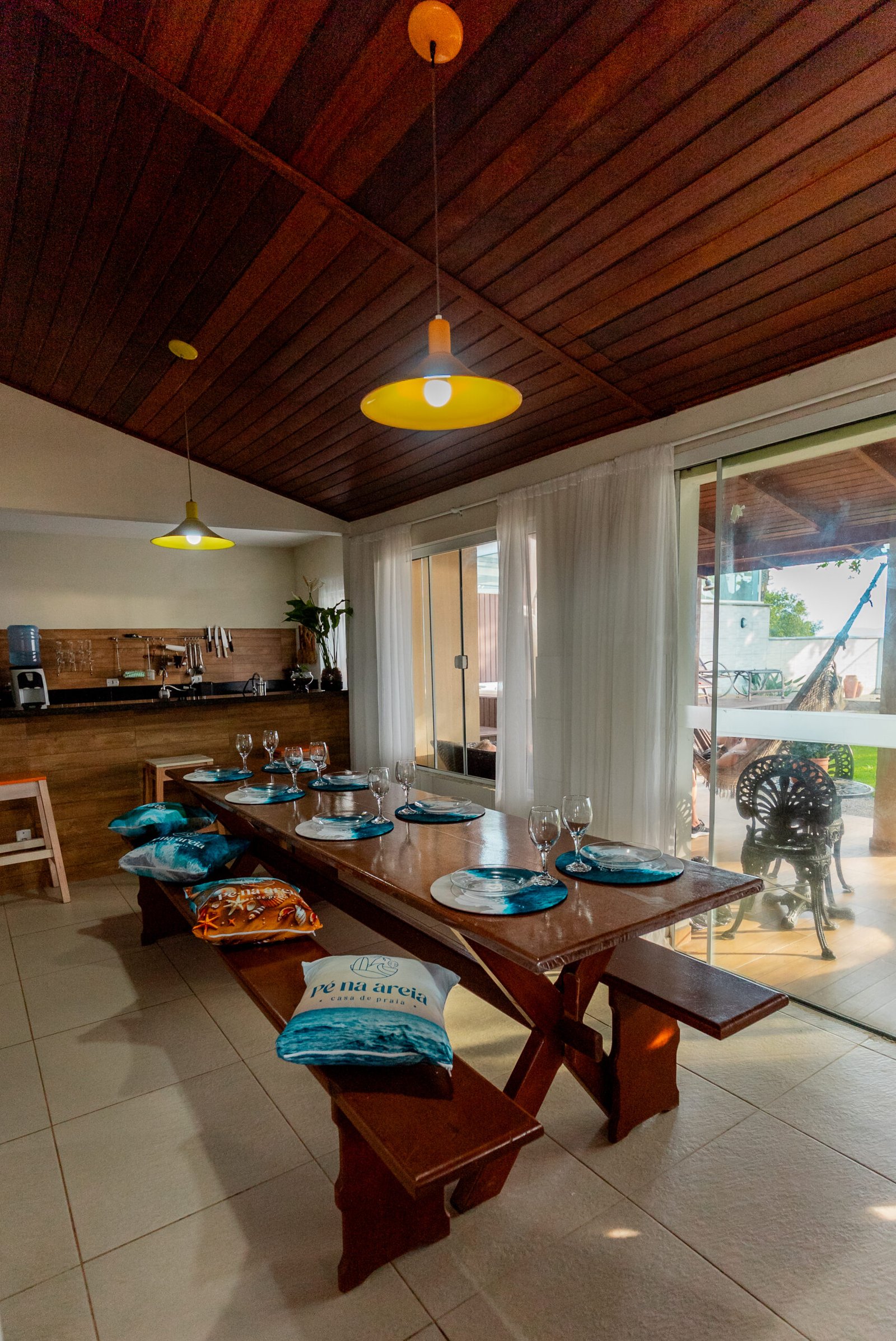 Casa grande, todo o pátio com estacionamento, churrasqueira frente mar, spa fre mar, quadra esportiva .